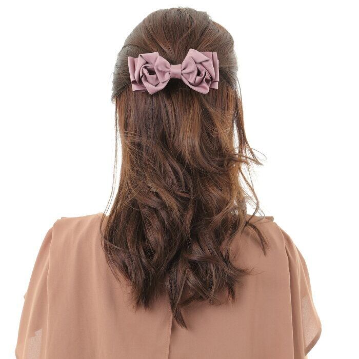 柔らかい質感のサテンファブリックリボンであしらわれた上品で大人可愛いおリボンバレッタです♪
