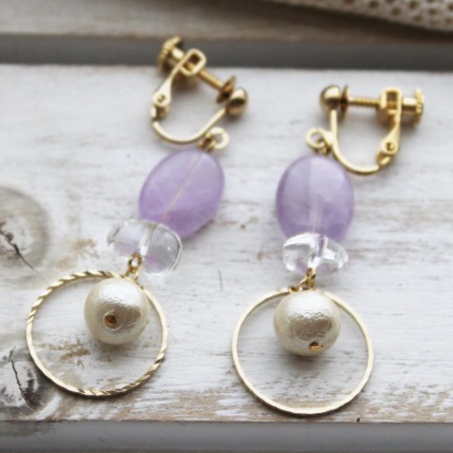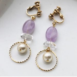 アメジスト&コットンパールイヤリング (保存袋付き)