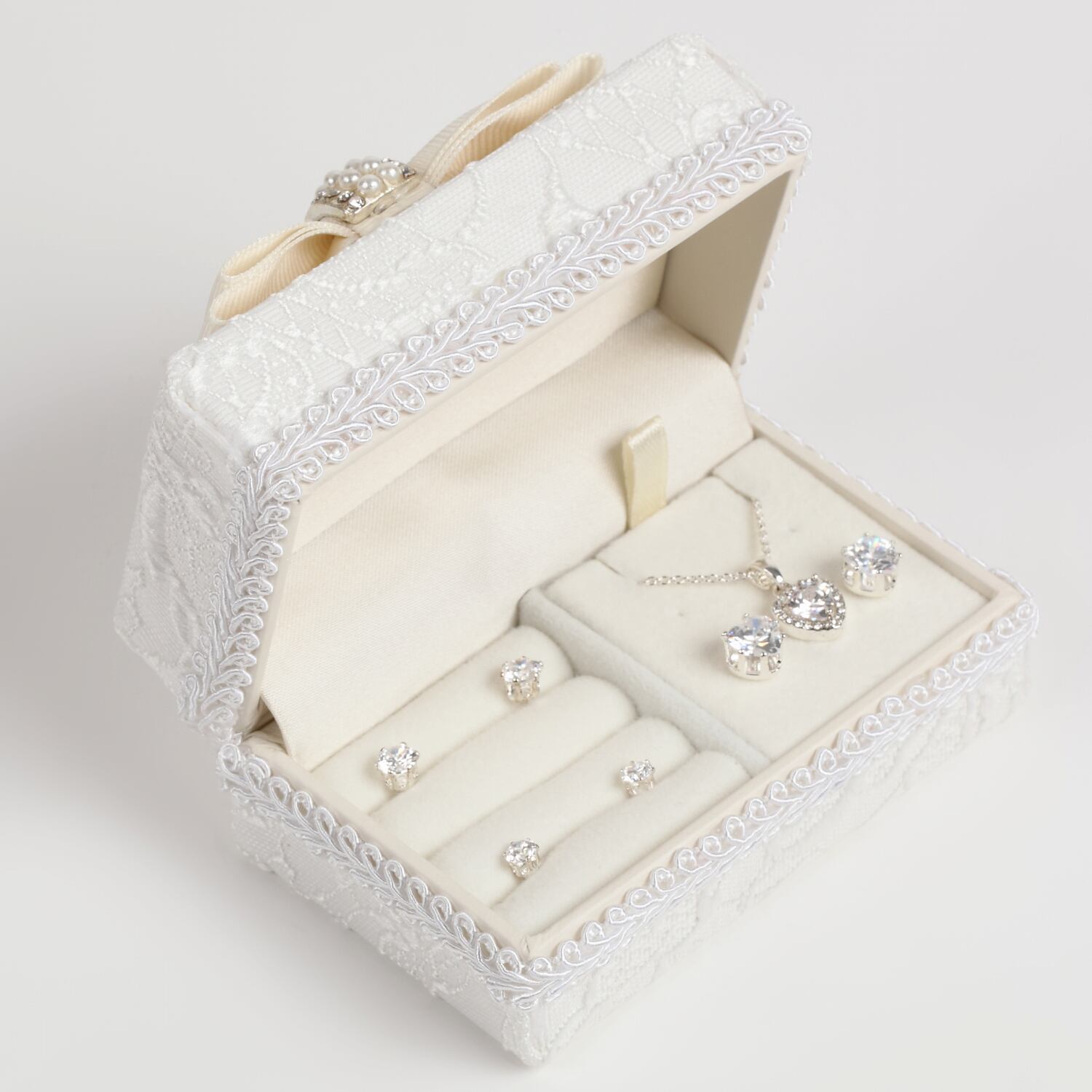 上品なレース柄に、パール、ビジューがあしらわれた女性らしいデザインです♪