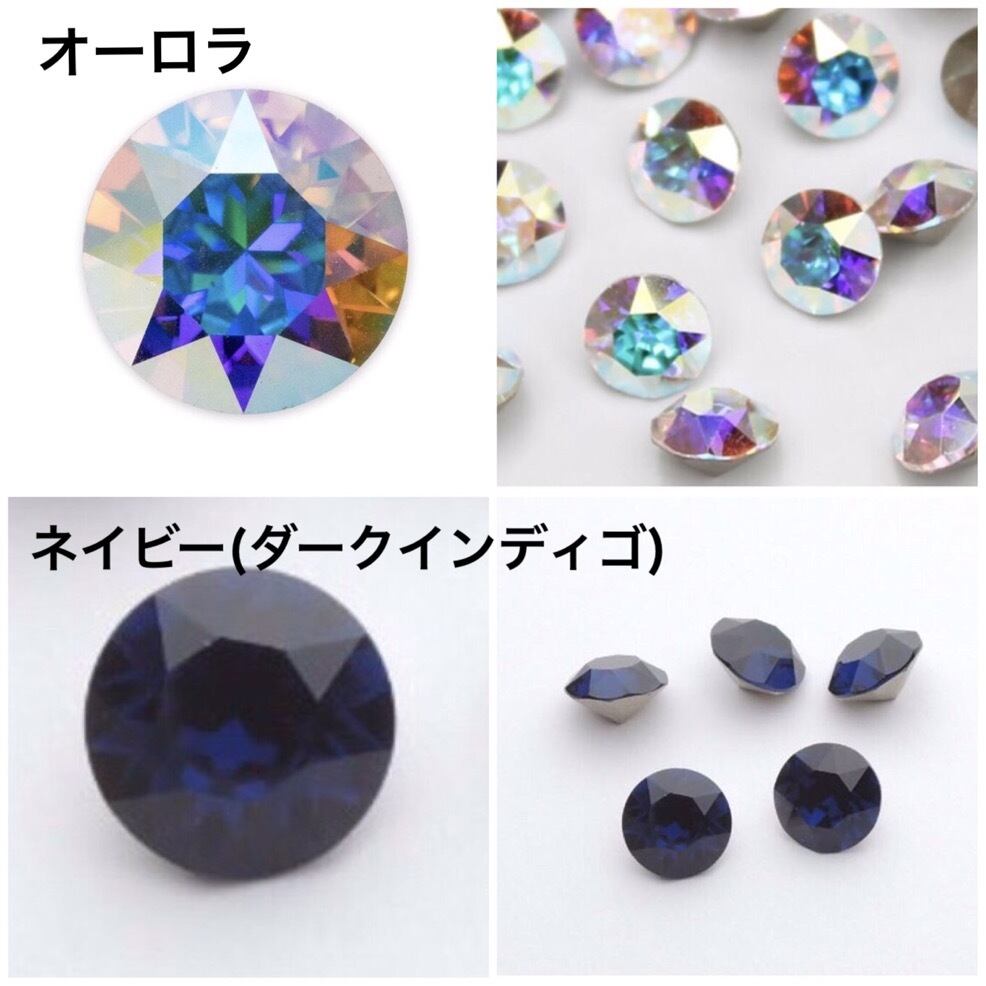 使用しているスワロフスキーは、底が平らな物ではなく、V字にカットされていますので、奥行があり、普通のストーンより取り込む光が多く、より輝きキラキラ感が増します。