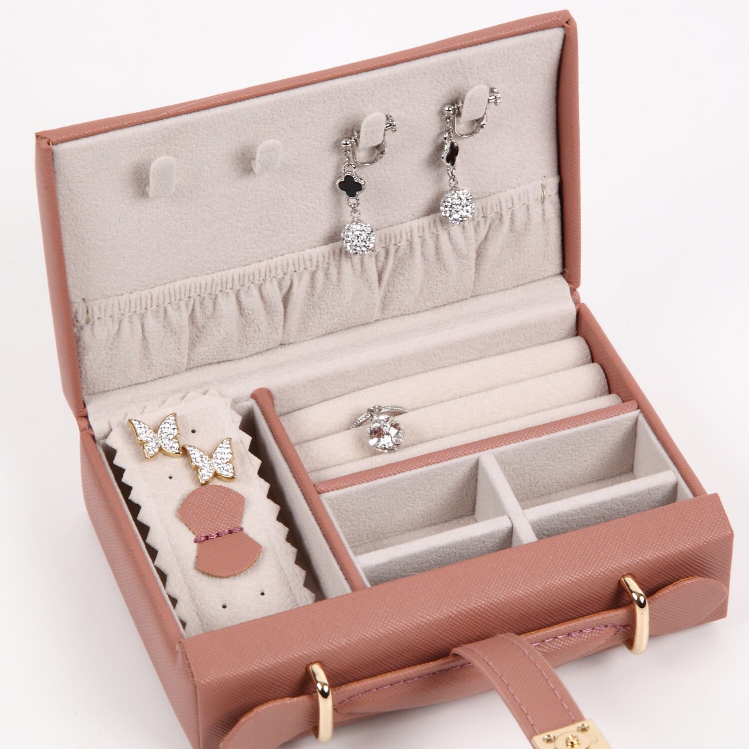 大人可愛いデザインの持ち運びできるバッグ型ジュエリーボックスです。